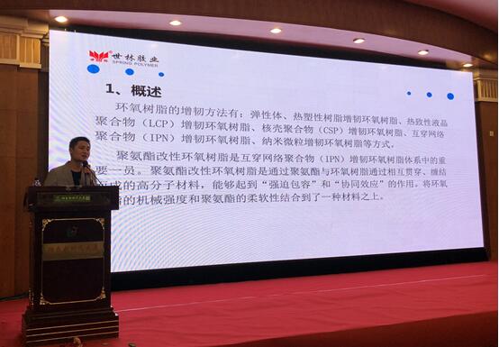 世林膠業(yè)劉工在環(huán)氧應用技術學術交流會上進行《聚氨酯改性環(huán)氧樹脂對環(huán)氧樹脂性能影響的研究》的演講。